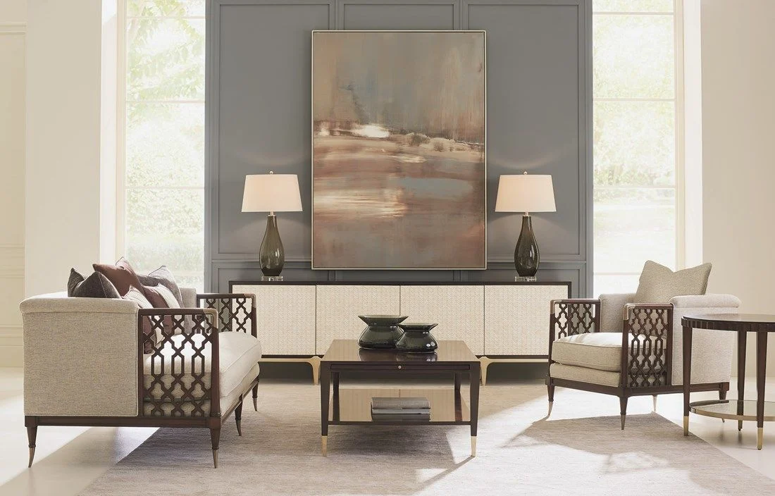 Trong phòng khách, Armchair không chỉ đóng vai trò là ghế ngồi bổ sung. Khi được đặt đối xứng với bộ Sofa văng gỗ Óc Chó, nó tạo nên một bố cục trang trọng, chuẩn mực cho những cuộc hội thoại đẳng cấp. Ngược lại, một chiếc Armchair đặt độc lập bên cạnh bàn tab sẽ tạo ra một góc tiếp khách thân mật và đầy tính gợi mở.
