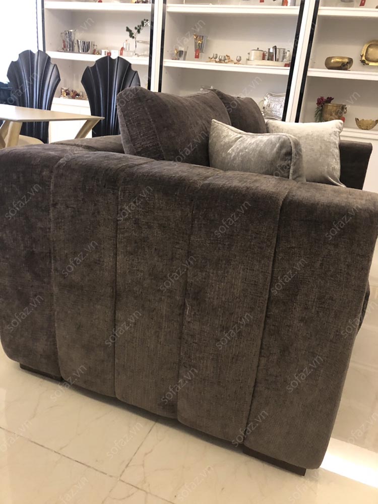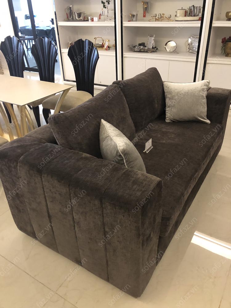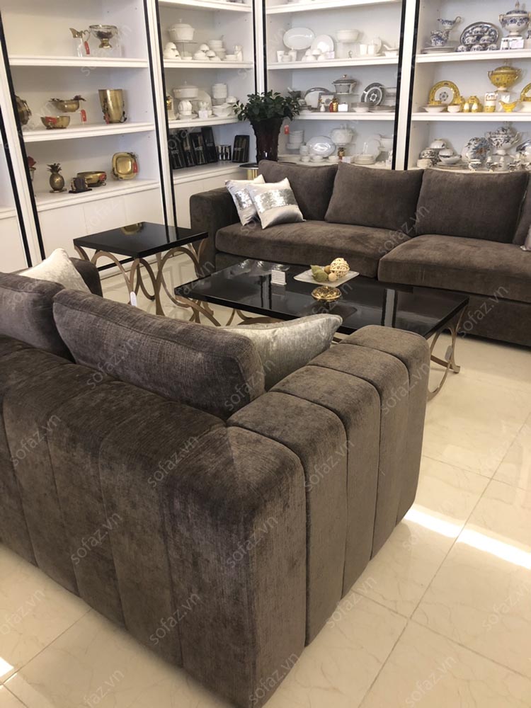 Ảnh chụp tại công trình bàn giao showroom anh Sơn - Long Biên. Bộ sofa cao cấp luxury AT05 bọc nỉ Bỉ nhập khẩu với kiểu dáng Hiện đại sang trọng, tinh tế. Bộ sofa  AT05 gồm 2 sofa văng được may chần ô hiện đại, đệm tựa rời sang trọng cùng màu nâu trầm tinh tế