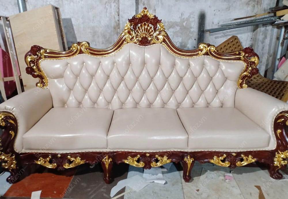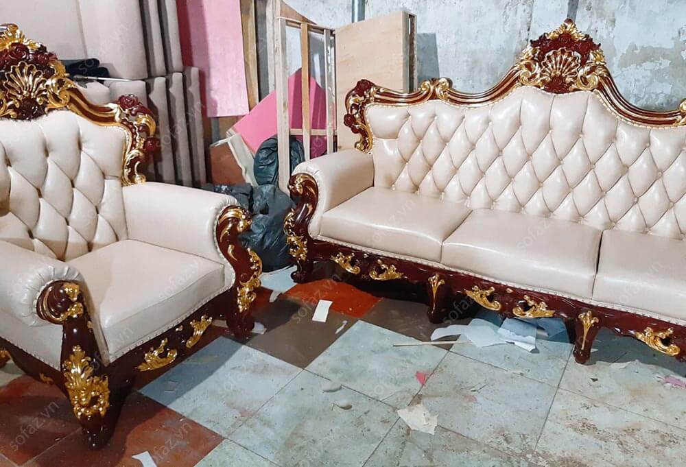 Ảnh thật bộ ghế sofa Tân cổ điển da cao cấp của anh Linh - Mỹ Đình tại xưởng sản xuất SofaZ: