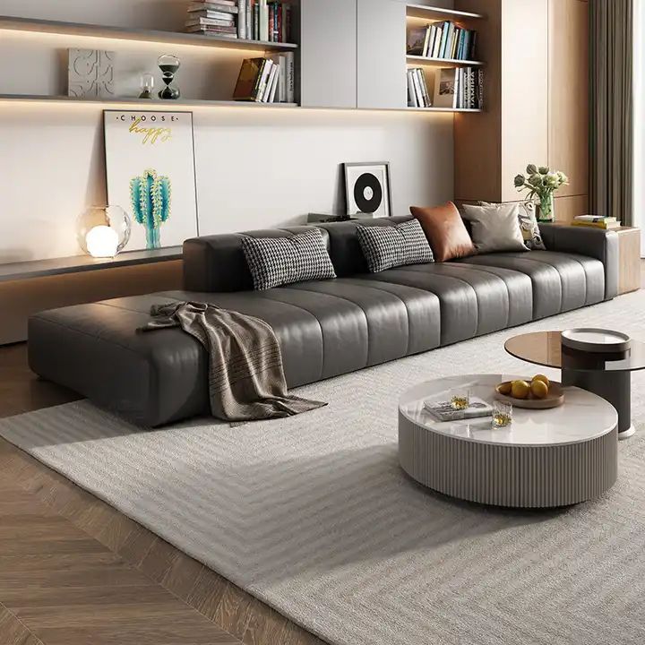 Sofa Băng Dài và Phối Đôn: Phù hợp với căn hộ nhỏ (dưới 60m²). Sofa băng dài kết hợp với đôn di động giúp bạn linh hoạt thay đổi bố cục: đôn có thể là chỗ ngồi thêm, chỗ gác chân, hoặc được di chuyển đi nơi khác khi trẻ cần không gian chạy nhảy.