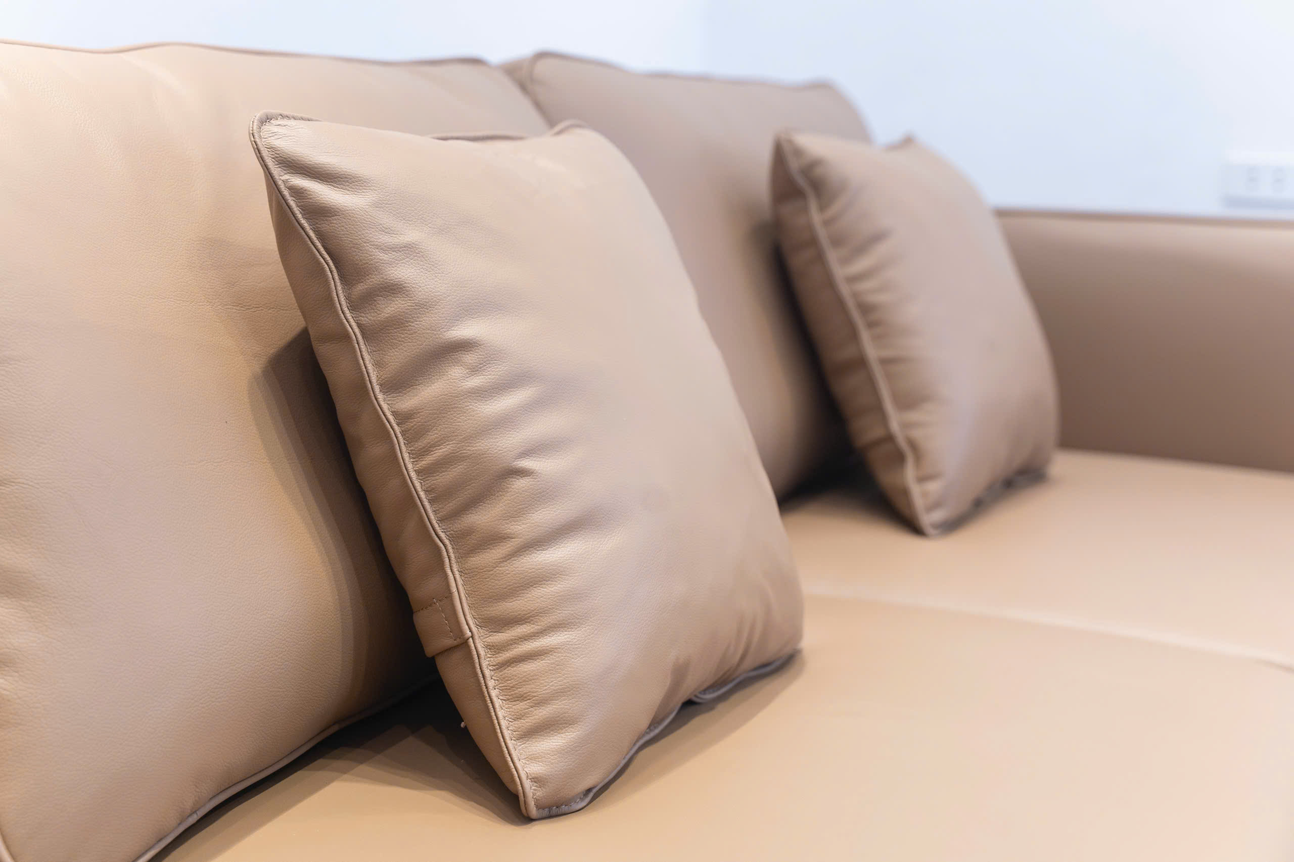 Sản phẩm được bọc bằng chất liệu sofa da thật cao cấp hạng sang, mang lại vẻ ngoài bóng nhẹ tự nhiên, thoáng khí và cảm giác chạm mềm mại. Màu nâu ấm áp (hoặc tông da bò/beige trung tính) là lựa chọn hoàn hảo, dễ dàng phối hợp với mọi màu sơn tường và tông gỗ nội thất, tạo nên một không gian nội thất cao cấp hài hòa.