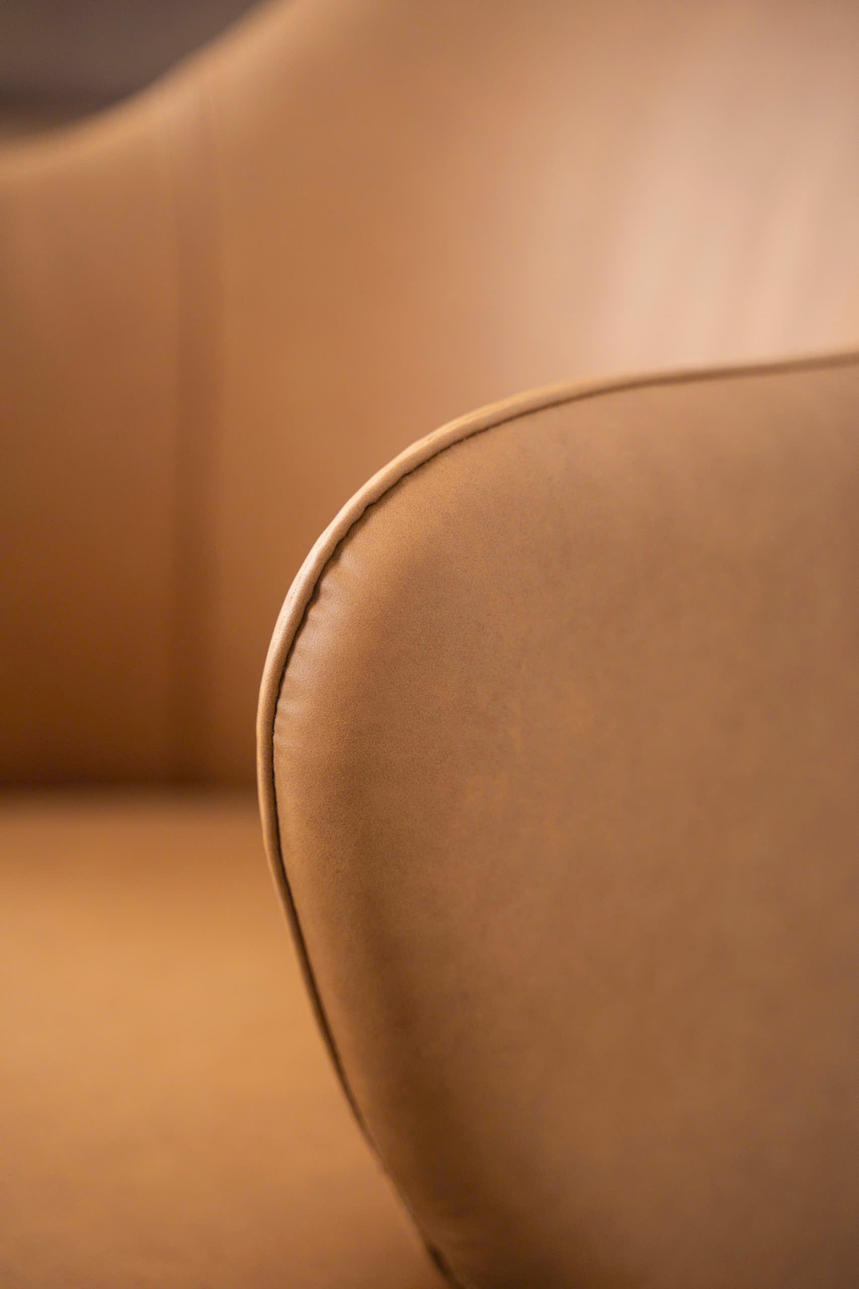 Nội Thất Văn Phòng/Phòng Làm Việc: Ghế có thể sử dụng làm ghế tiếp khách sang trọng trong văn phòng Giám đốc hoặc khu vực chờ VIP. Màu Caramel và đường cong tinh tế thể hiện gu thẩm mỹ đẳng cấp và chuyên nghiệp của công ty.