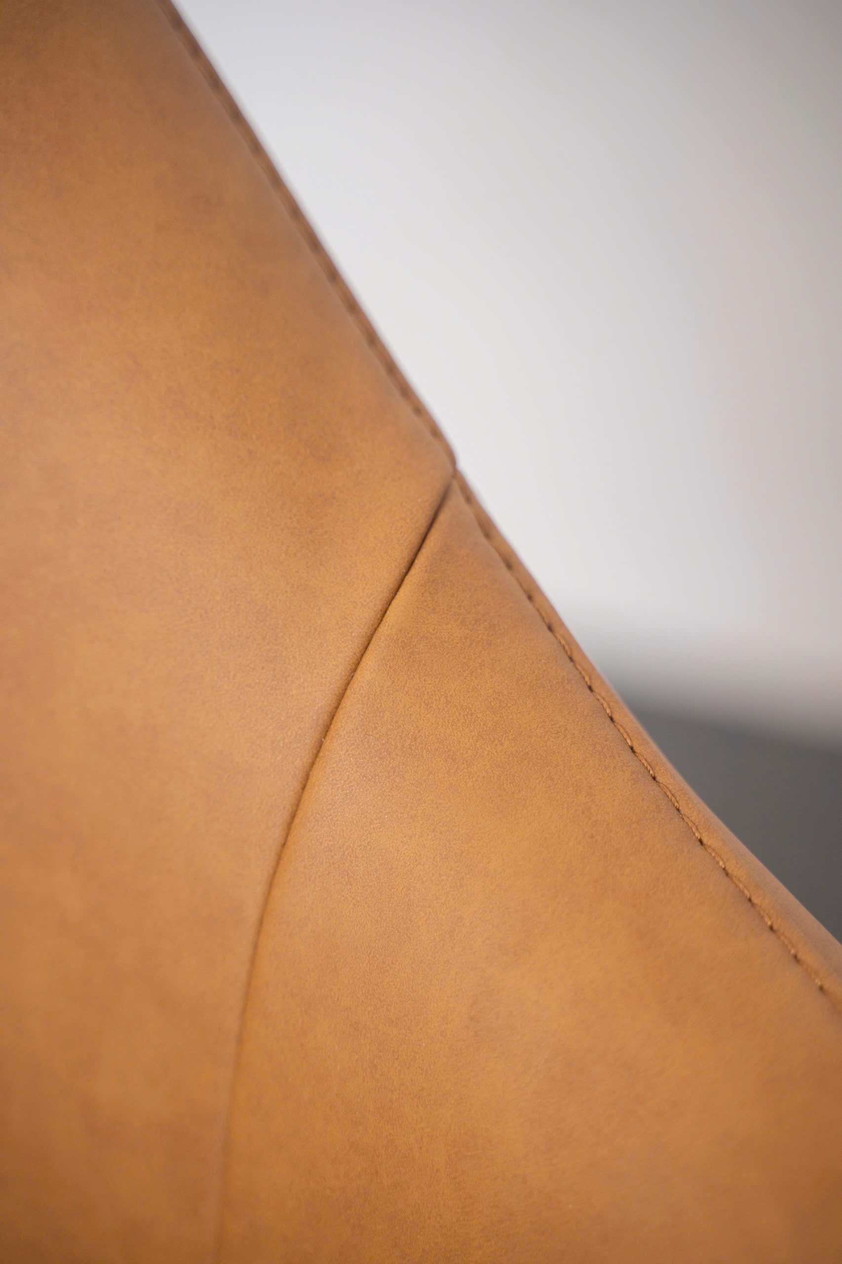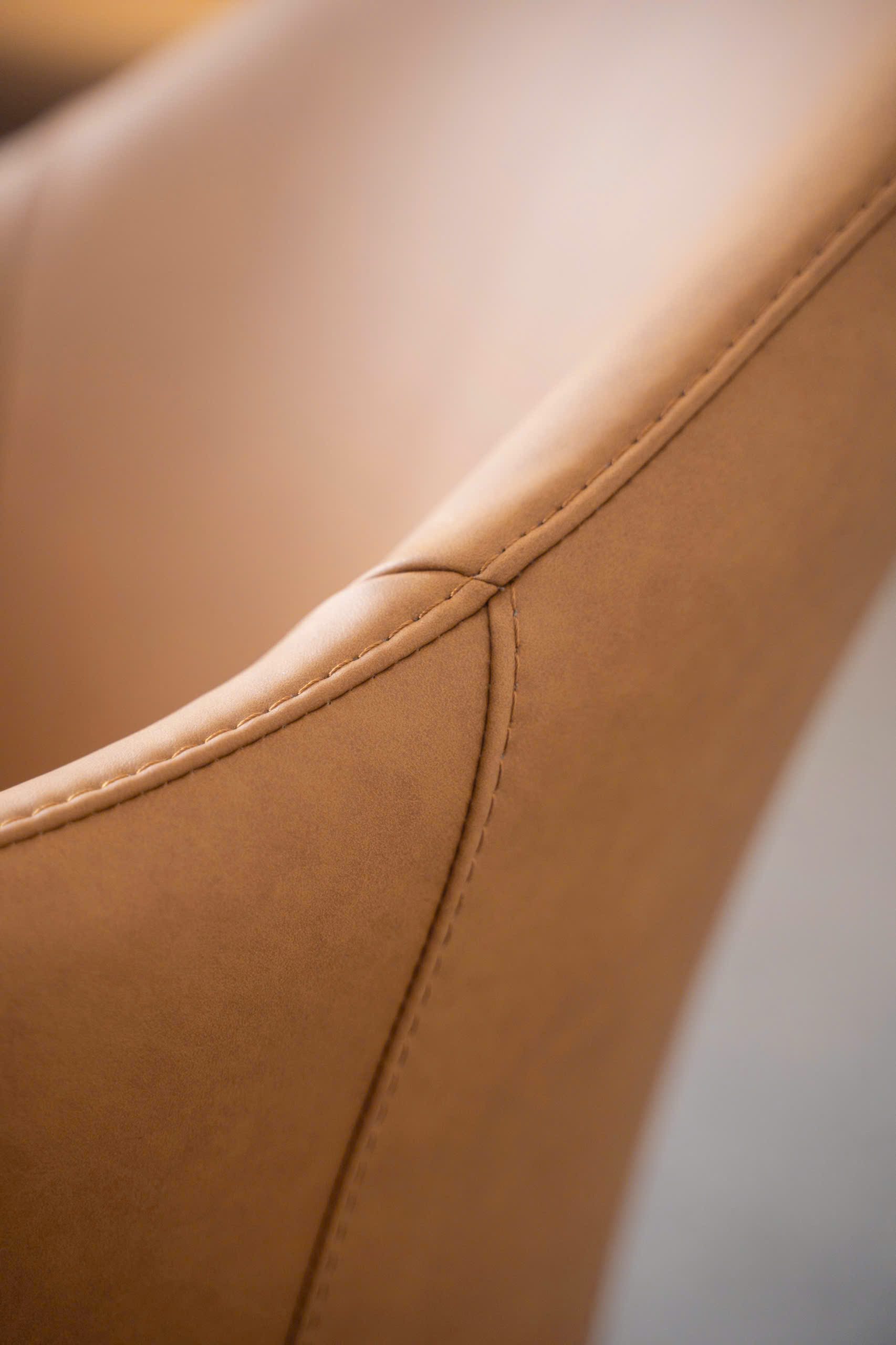 Lớp Da/Simili cao cấp khoác lên mình tông màu Nâu Caramel (hoặc Cognac) ấm áp, mang lại sự sang trọng cổ điển nhưng không kém phần hiện đại. Đây là màu sắc linh hoạt, dễ dàng phối hợp với gỗ, kim loại và các tông màu trung tính khác.
