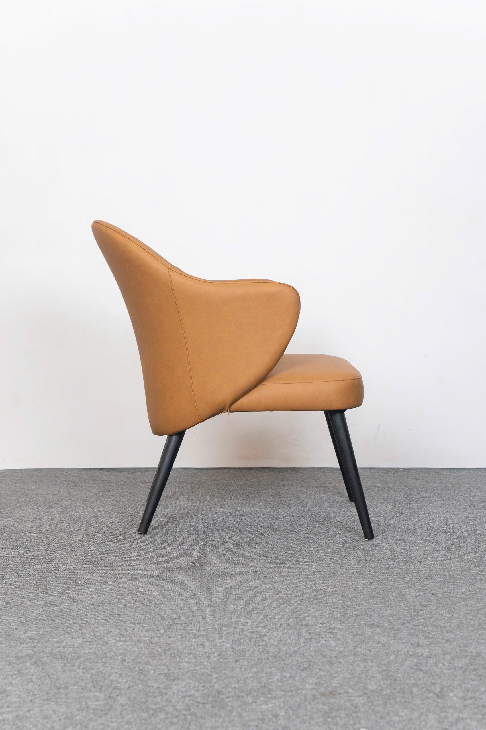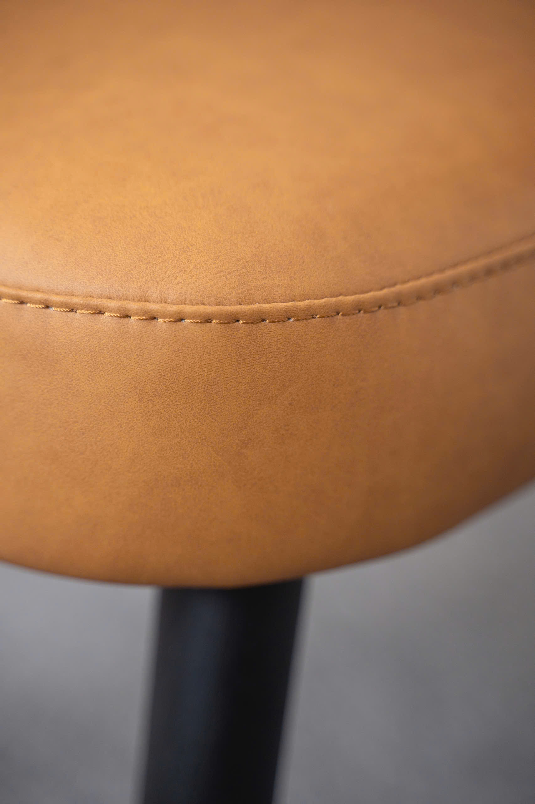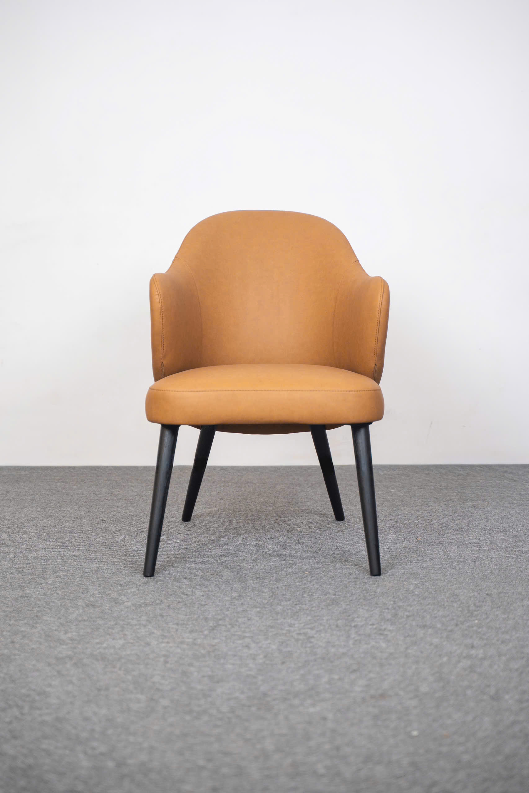 Chân ghế được sơn phủ màu đen mờ thon gọn, tạo sự tương phản mạnh mẽ nhưng tinh tế với màu Nâu Caramel của thân ghế. Sự đối lập này giúp ASCOT nổi bật và định hình không gian một cách rõ ràng.
