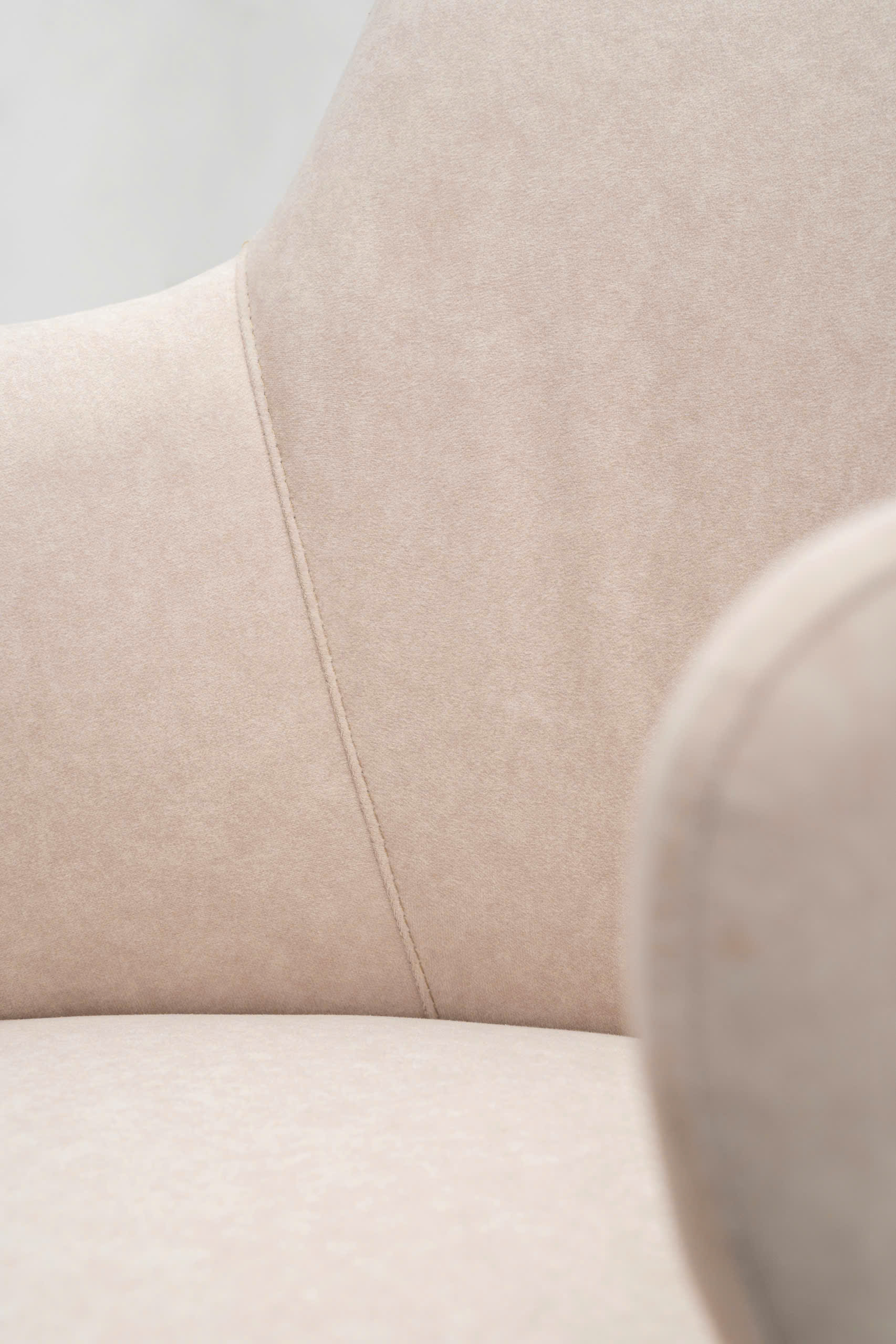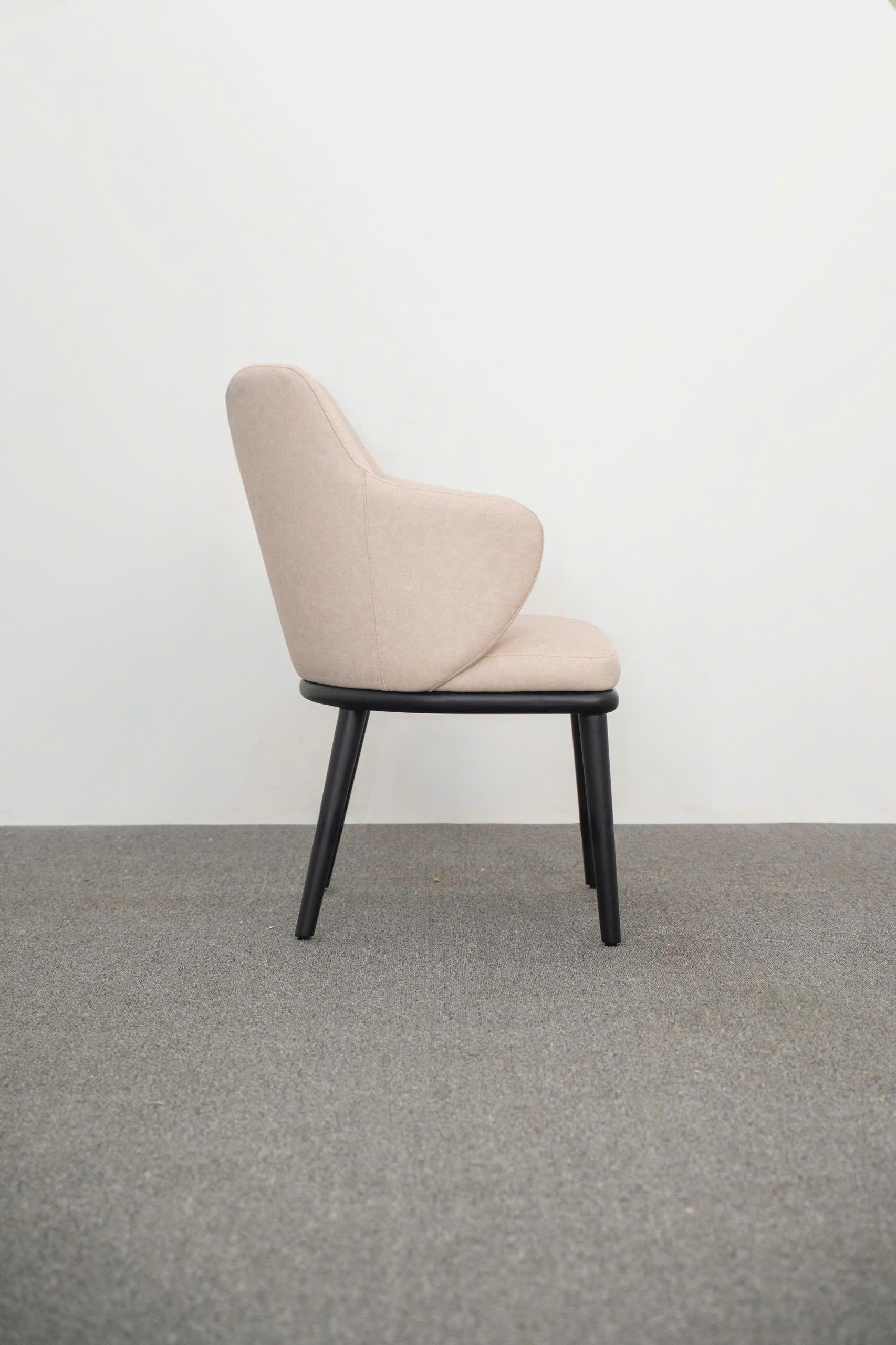 Serene sở hữu phần thân ghế đầy đặn, dày dặn, tương phản hoàn toàn với hệ chân thép thanh mảnh. Sự đối lập này tạo nên một tổng thể cân bằng: vững chãi về cấu trúc nhưng lại cực kỳ thanh thoát, nhẹ nhàng về mặt thẩm mỹ.