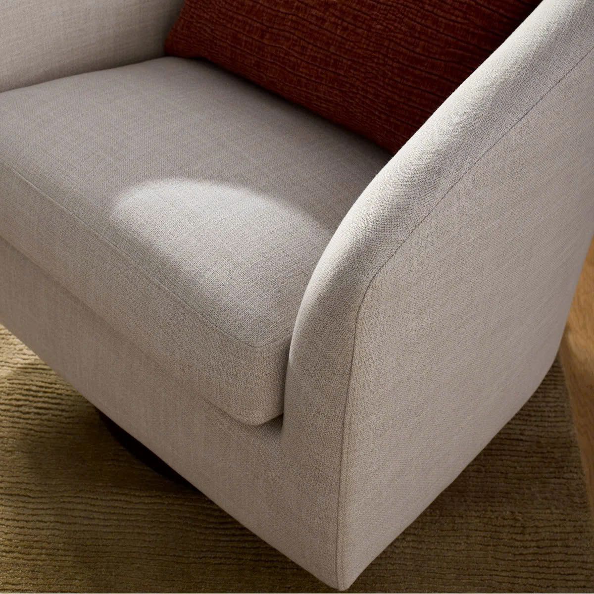 Ghế được bọc bằng vải dệt cao cấp, mang tông màu kem/be nhạt (hoặc xám nhạt), một gam màu thời thượng và tinh tế. Màu sắc này không chỉ dễ dàng hòa hợp với mọi phong cách và bảng màu nội thất, mà còn mang lại vẻ đẹp thanh lịch, sáng sủa, làm bừng sáng không gian thư giãn của bạn.