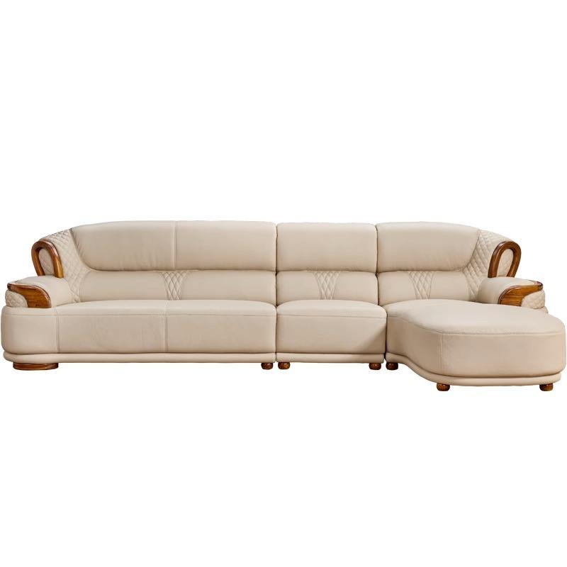 Chất liệu da công nghiệp cho phép tùy chọn nhiều tông màu trung tính (be/ghi sáng), dễ dàng làm sáng bừng không gian phòng khách hiện đại.