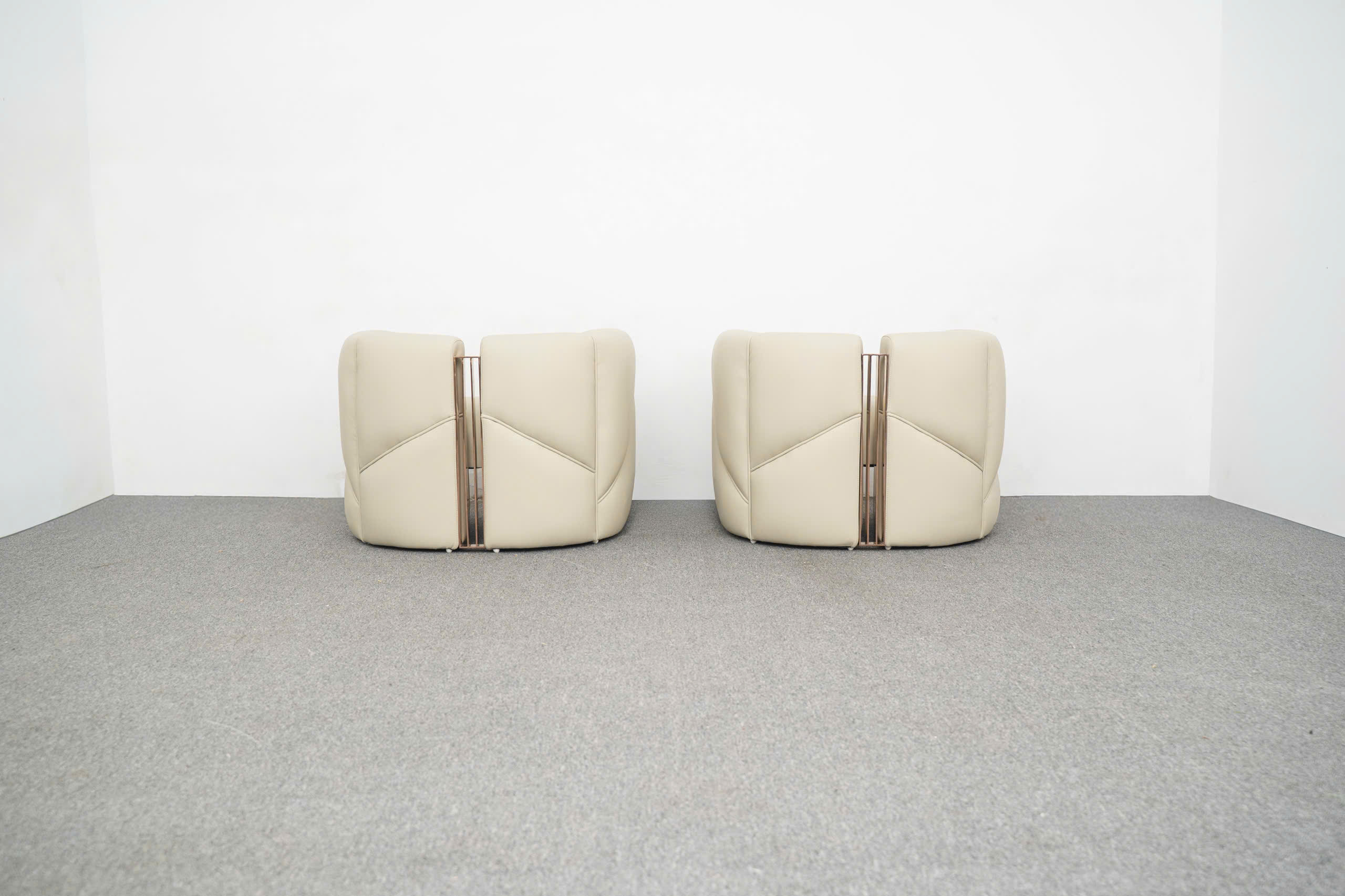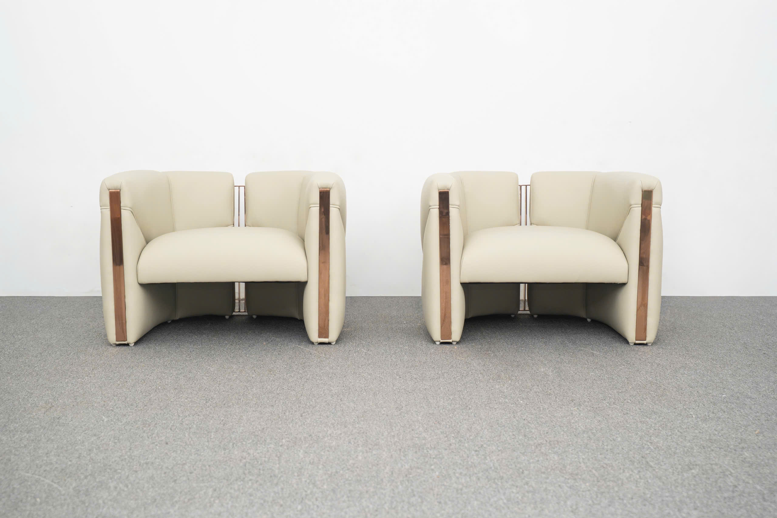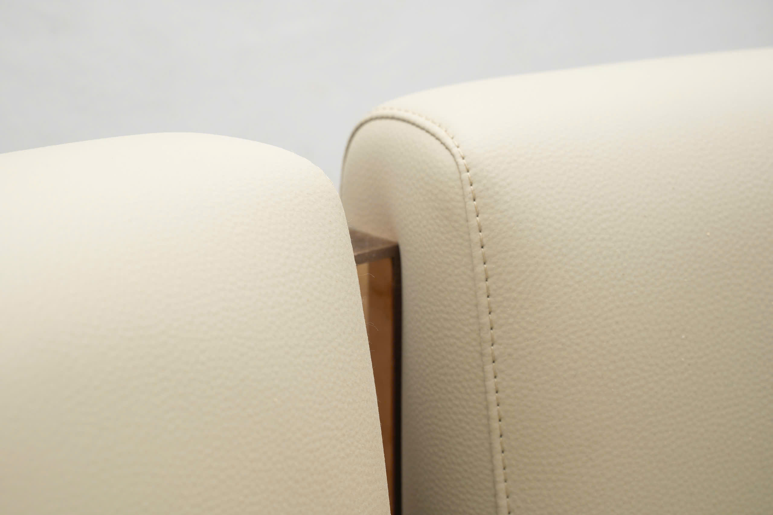 Sức hút của Sofa Soren còn đến từ sự kết hợp vật liệu đầy tinh tế, nơi mà sự ấm áp của chất da gặp gỡ với vẻ sắc lạnh, sang trọng của kim loại. Lớp da bọc cao cấp (thường là da Microfiber hoặc da bò thật) được tuyển chọn khắt khe với bề mặt mịn màng, độ đàn hồi tuyệt vời và khả năng giữ màu bền bỉ theo thời gian. Gam màu kem trung tính của Soreni mang lại cảm giác thanh lịch, nhã nhặn, giúp làm dịu đi những đường nét góc cạnh, tạo ra một tổng thể hài hòa và đầy tính hiếu khách cho căn phòng.