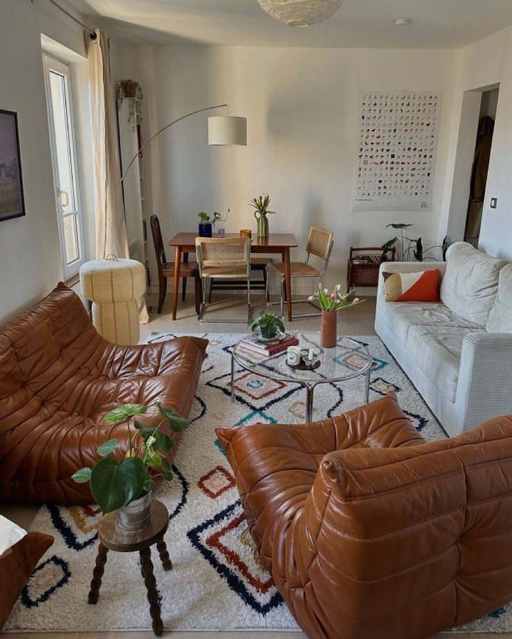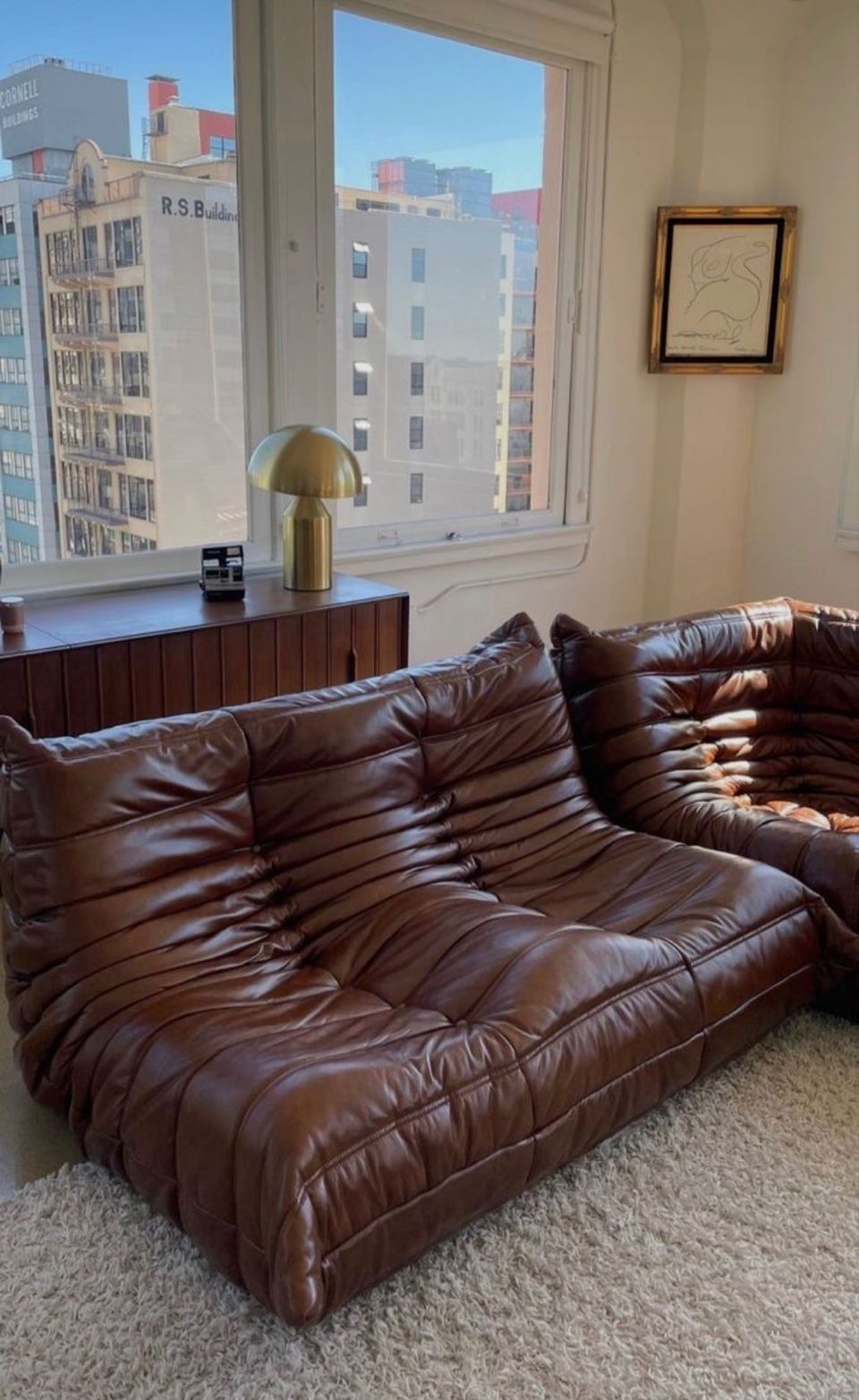 - Thẩm Mỹ và Phong Cách: Da thật mang lại vẻ ngoài sang trọng, sắc nét và có chiều sâu. Các nếp gấp đặc trưng của Togo được thể hiện rõ ràng và mạnh mẽ hơn, củng cố tính điêu khắc của chiếc ghế. Lớp da có độ bóng nhẹ, tạo cảm giác quyền lực và tinh tế, lý tưởng cho không gian nội thất cao cấp mang phong cách Industrial hoặc Mid-Century Modern.