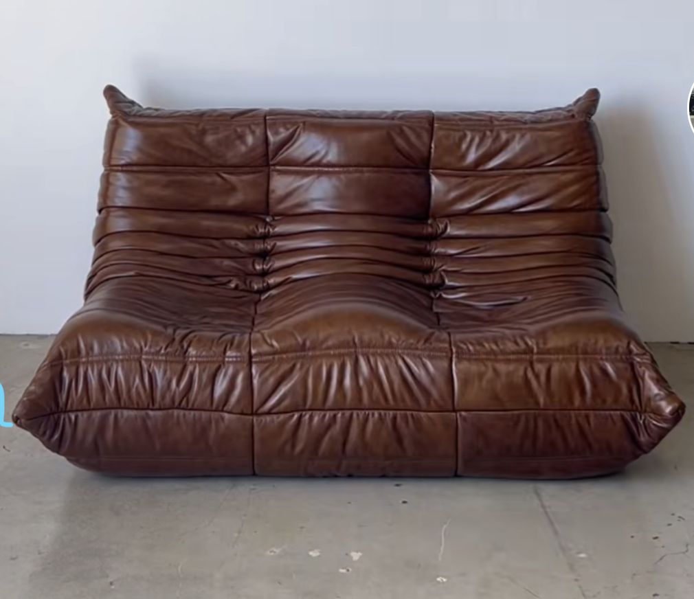 - Đường Nét Mềm Mại: Togo Đôi nổi tiếng với hình dáng mềm mại, như một chiếc túi đựng đồ được buộc gọn, với các nếp gấp (pleats) đặc trưng chạy dọc thân ghế. Những nếp gấp này không chỉ mang lại hiệu ứng thị giác độc đáo mà còn là chi tiết thể hiện sự tỉ mỉ trong kỹ thuật may bọc.