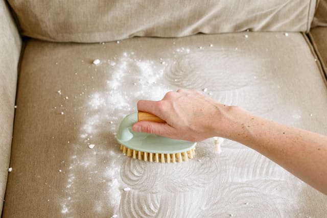 - Rắc bột Baking Soda lên vết mốc và để yên trong khoảng 15-20 phút. Thời gian này giúp hỗn hợp thẩm thấu, hút ẩm và cô lập các chất bẩn.