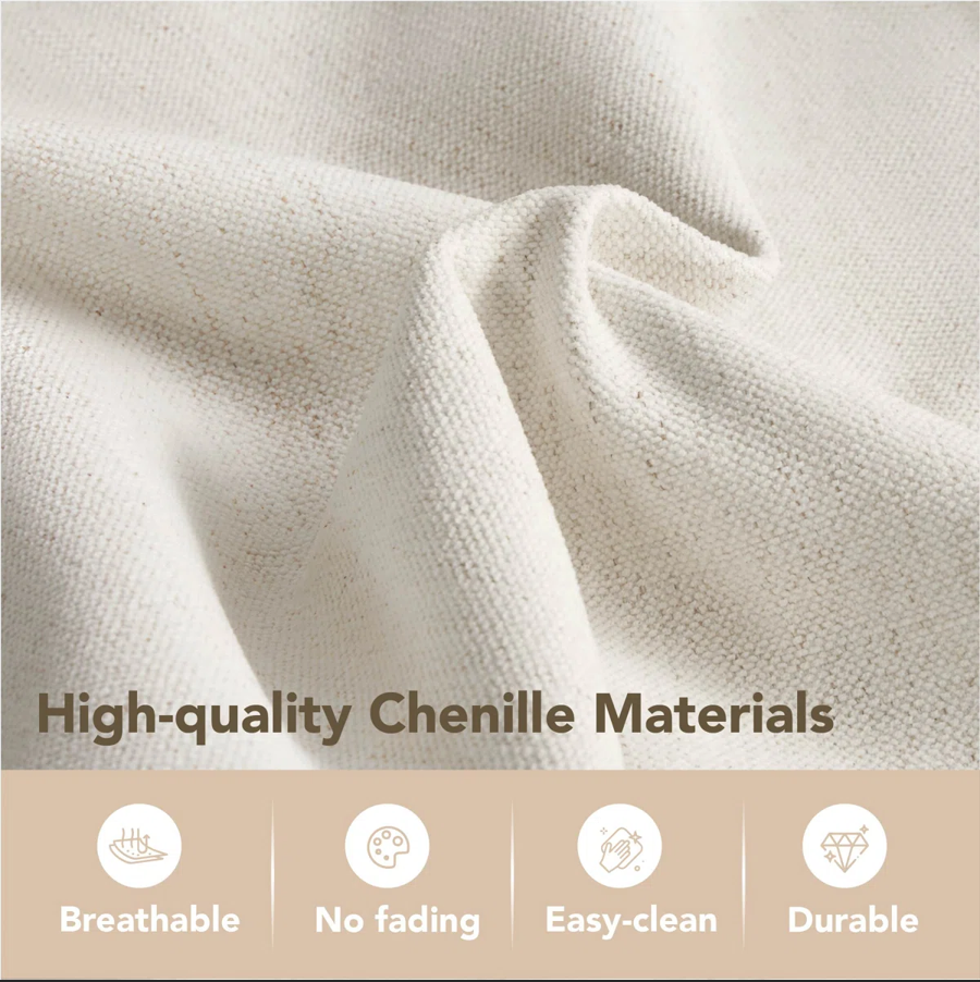 Sợi Chenille được dệt với kỹ thuật chuyên sâu, đảm bảo không phai màudưới tác động của ánh sáng và có độ bền cao, chống sờn rách trong quá trình sử dụng hàng ngày.