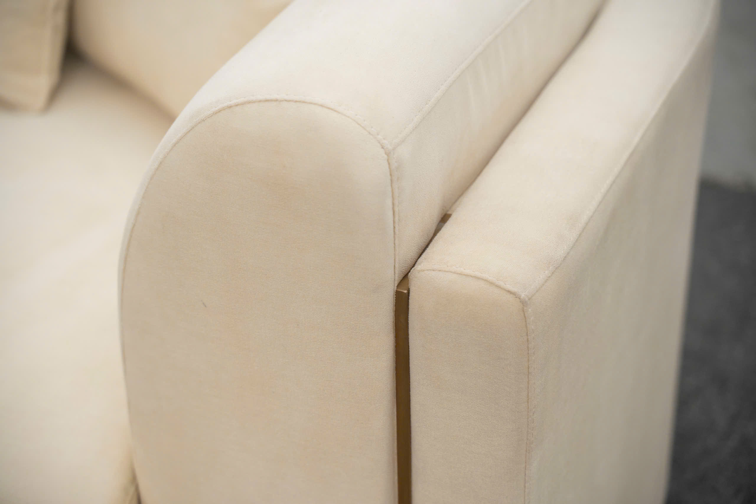 Một chi tiết nhỏ nhưng rất đắt giá trên Sofa Kadoni chính là những đường nẹp kim loại màu vàng đồng chạy dọc theo các khe nối của ghế. Sắc vàng kim giúp bộ sofa trở nên nổi bật, tạo cảm giác sang trọng và cao cấp hơn hẳn.
