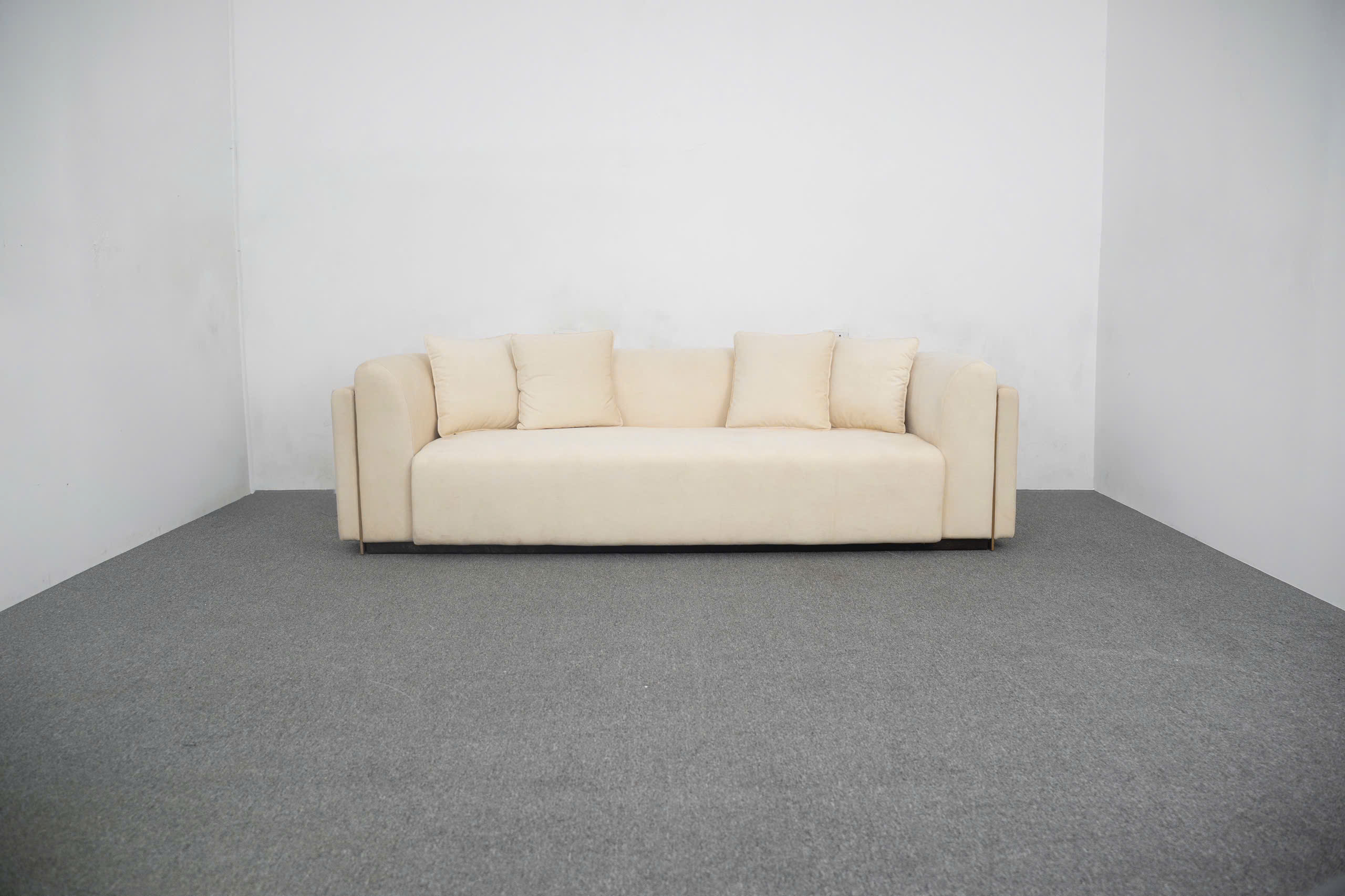 Chân ghế được thiết kế thấp và hơi lùi vào bên trong, tạo cảm giác bộ sofa đang đặt trực tiếp trên sàn một cách vững vàng, đồng thời giúp việc vệ sinh sàn nhà xung quanh trở nên thuận tiện hơn.