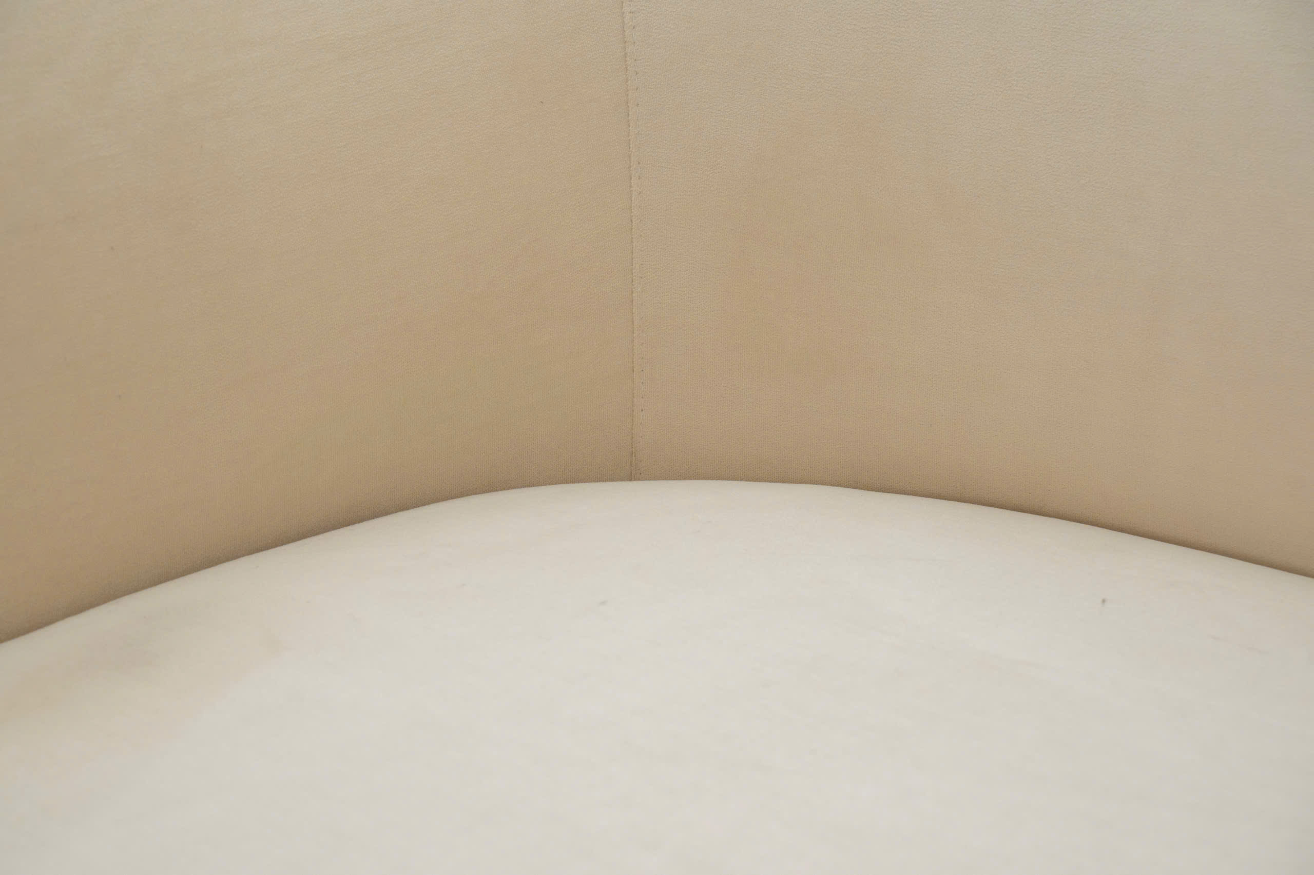 Bề mặt ghế được bao phủ bởi lớp vải cao cấp với tông màu kem nhã nhặn. Loại vải này có ưu điểm là rất mịn, không gây kích ứng da và có độ thoáng khí cao, giúp bạn ngồi lâu mà không cảm thấy bí nóng. Màu kem cũng là màu sắc dễ phối với các loại thảm, màu sơn tường hay rèm cửa khác nhau.